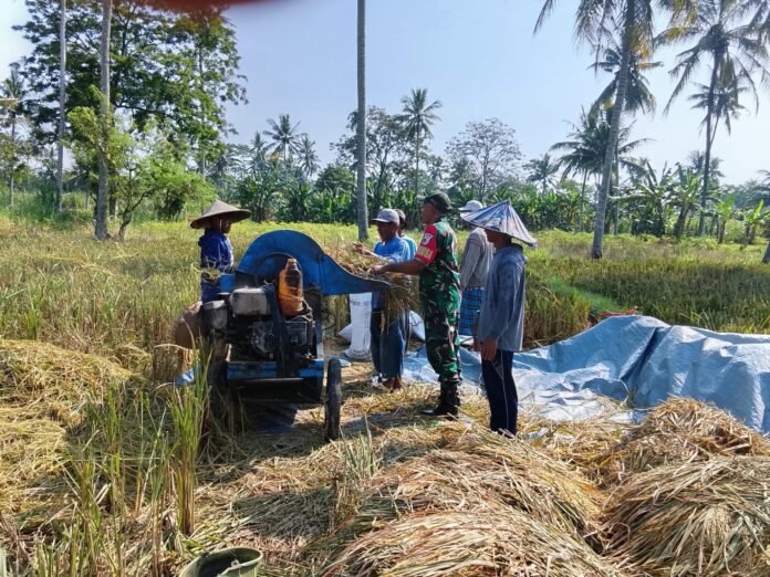 Lumajang – Babinsa Sememu Koramil 0821-08/Pasirian, Sertu Rokhibul Imam, melaksanakan pendampingan panen padi bersama petani di Dusun Kedung Supit RT 001 RW 001, Desa Sememu, Kecamatan Pasirian, Kabupaten Lumajang, Selasa (7/4/2026).