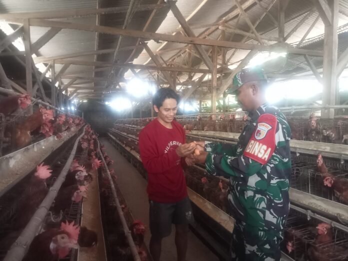 Lumajang, Dalam upaya mempererat hubungan dengan warga binaan sekaligus mendukung ketahanan ekonomi masyarakat, Babinsa Klanting Koramil 0821-02/Sukodono, Sertu Andi Purwanto, melaksanakan kegiatan silaturahmi ke salah satu peternak ayam petelur, Qoiyul Qoiyum, di Dusun Trunosari RT 005 RW 005 Desa Klanting, Kecamatan Sukodono, Kabupaten Lumajang, Jawa Timur, pada Sabtu (8/11/2025).