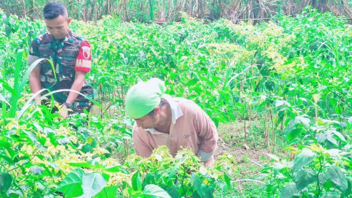 Lumajang, Sebagai bentuk dukungan terhadap ketahanan pangan di wilayah binaan, Babinsa Papringan Koramil 0821-05/Klakah, Sertu Muhtaryono, melaksanakan pendampingan panen cabai di lahan milik Suwandi, anggota Kelompok Tani (Poktan) Damai I, yang berlokasi di Dusun Krajan, Desa Papringan, Kecamatan Klakah, Kabupaten Lumajang, Jawa Timur, pada Sabtu (11/10/2025).
