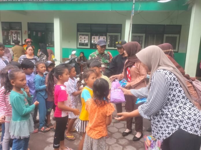 Lumajang — Di tengah suasana pemulihan pasca-erupsi Gunung Semeru, kepedulian terhadap kondisi psikologis anak-anak terus menjadi perhatian utama. Pada Rabu (26/11/2025), Babinsa Supiturang Koramil 0821-14/Pronojiwo, Serda Sigit Andi Irawan, turut membantu para guru dan relawan dalam kegiatan berbagi makanan ringan serta mainan bagi anak-anak yang berada di pengungsian SDN 04 Supiturang.