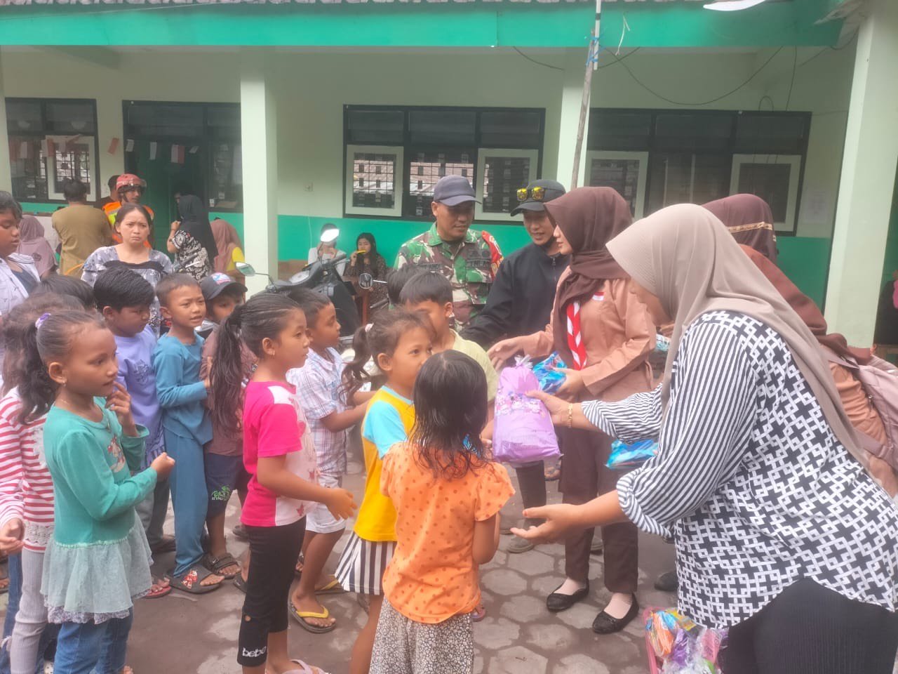 Kegiatan berbagi ini disambut hangat oleh para orang tua dan anak-anak di pengungsian, yang merasa terbantu oleh perhatian dan kepedulian dari berbagai pihak. (Pendim 0821).