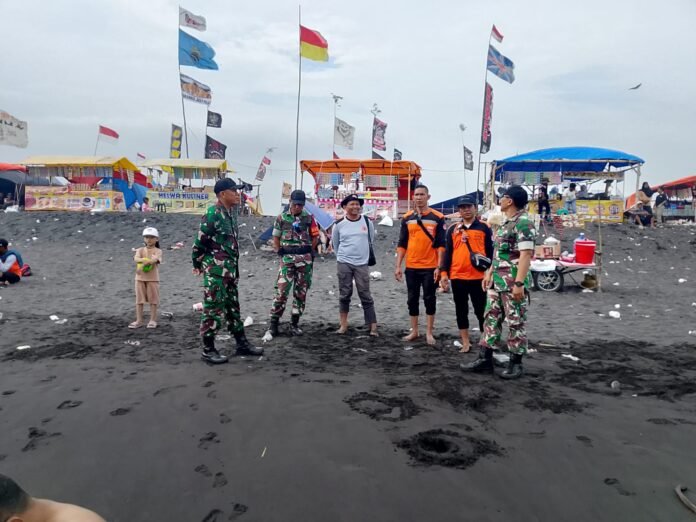 Lumajang – Dalam rangka memastikan keamanan dan kenyamanan masyarakat pasca libur Hari Raya Idul Fitri 1447 H, Babinsa Wotgalih Koramil 0821-11/Yosowilangun, Peltu Guntur Purwanto, bersama stakeholder melaksanakan pendampingan kegiatan monitoring pengunjung wisata pantai di kawasan Wisata Pantai Mbah Drajit, Desa Wotgalih, Kecamatan Yosowilangun, Kabupaten Lumajang, Jawa Timur, Jumat (27/3/2026).