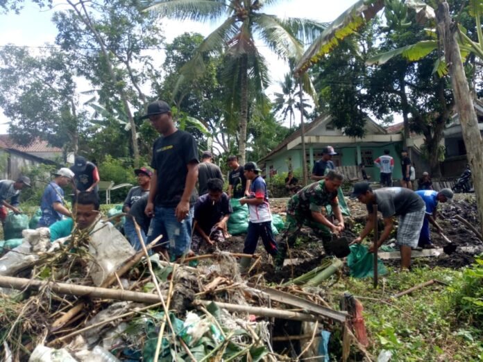 Lumajang, Dalam upaya mempererat kebersamaan antara TNI dan masyarakat sekaligus menjaga kelestarian lingkungan, Babinsa Jarit Koramil 0821-09/Candipuro, Serka Wahyudi, bersama warga Dusun Uranggantung RT 061 RW 010 Desa Jarit, Kecamatan Candipuro, Kabupaten Lumajang, melaksanakan kerja bakti pembersihan dan perbaikan Dam aliran Sungai Kecik, pada Sabtu (1/11/2025).