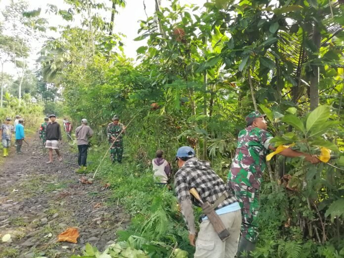 Lumajang, Dalam upaya menjaga kebersihan lingkungan sekaligus mempererat tali silaturahmi dengan masyarakat, Babinsa Pasrujambe Koramil 0821-17/Pasrujambe, Serda Amil Fahrudin, bersama warga melaksanakan kegiatan kerja bakti pembersihan kanan kiri jalan di Dusun Tulungrejo, Desa Pasrujambe, Kecamatan Pasrujambe, Kabupaten Lumajang, Jawa Timur, pada Rabu (8/10/2025).