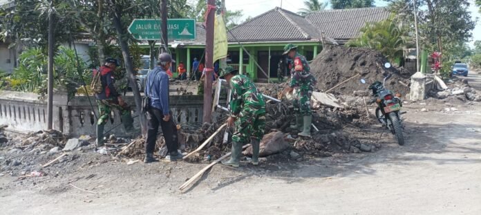 Dengan menggunakan alat manual seperti cangkul, sekop, dan sapu lidi, personel gabungan bergerak dari rumah ke rumah. Ada yang membersihkan atap, ada yang menyapu halaman, dan sebagian lainnya membantu warga memindahkan perabotan berat yang terdampak abu tebal. Bagi masyarakat, aksi ini adalah napas segar membantu meringankan beban di tengah situasi yang masih penuh ketidakpastian.
