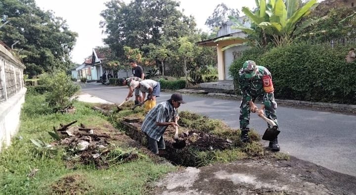 Bersih Lingkungan, Babinsa Kebonsari Dampingi Warga Kerja Bakti Bersama