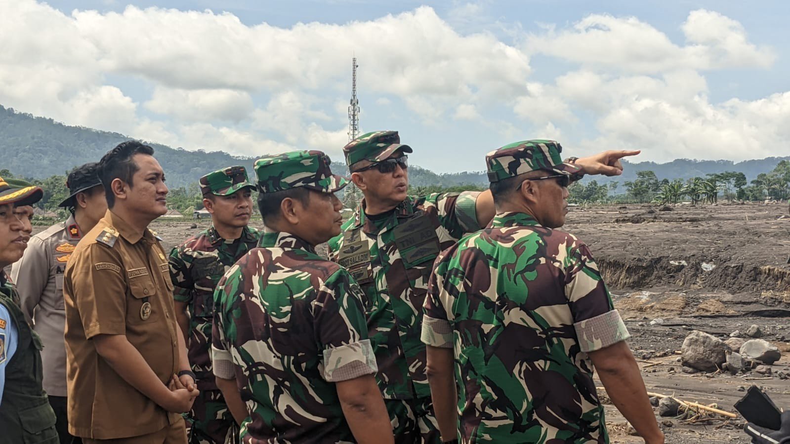 Lumajang, Danrem 083/Baladhika Jaya Kolonel Inf Kohir mendampingi Pangdam V/Brawijaya Mayjen TNI Rudi Saladin dalam peninjauan Posko Tanggap Darurat Bencana erupsi Gunung Semeru di Desa Supiturang, Kecamatan Pronojiwo, Senin (24/11/2025).