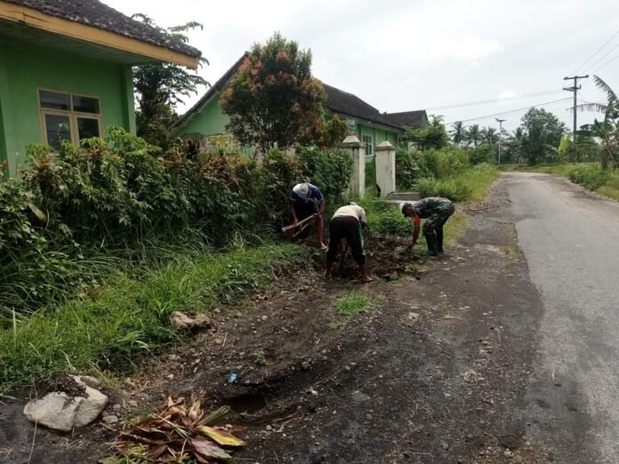 Kegiatan tersebut menjadi wujud nyata kemanunggalan TNI dengan rakyat dalam menjaga kebersihan lingkungan sekaligus menciptakan akses jalan yang nyaman dan aman bagi masyarakat. Dengan penuh semangat, Babinsa dan warga bahu-membahu membersihkan rumput liar, sampah, serta material yang mengganggu di sepanjang jalan dusun.