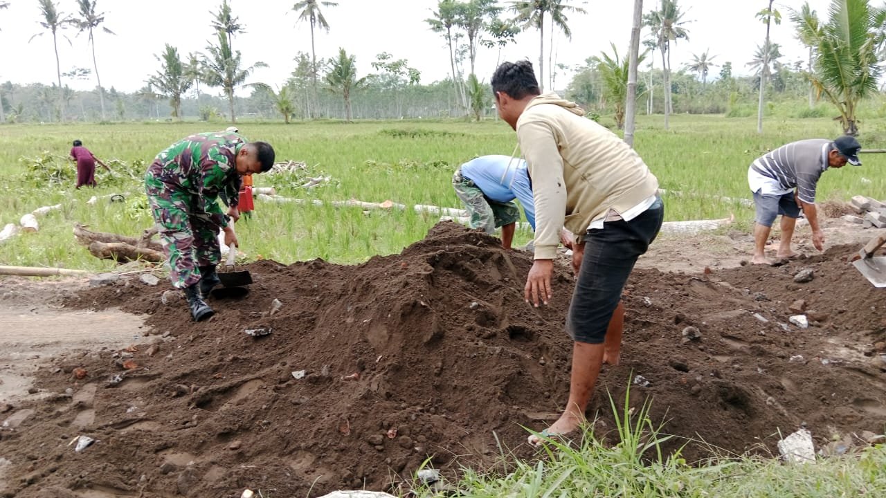 Kebersamaan Tak Luntur, Babinsa dan Warga Tumpeng Timur Bekerja Sama Benahi Infrastruktur Desa