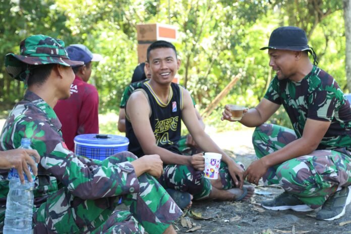 Bagi para prajurit TMMD, suasana seperti itu bukan hanya sekadar waktu istirahat, tetapi juga menjadi momen mempererat kekompakan dan solidaritas tim. Sikap saling mendukung di lapangan menjadi cerminan bahwa semangat manunggal TNI-rakyat tidak hanya tercermin dari hasil kerja fisik, tetapi juga dari rasa persaudaraan yang tumbuh di setiap kegiatan.