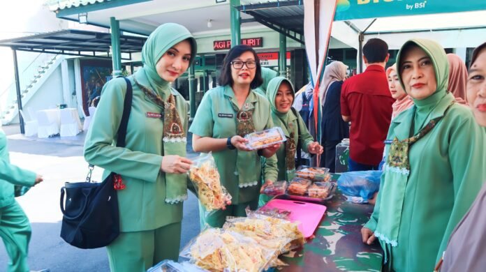 Suasana bazar di halaman Makodim 0821 tampak ramai dengan kehadiran anggota Persit dan masyarakat yang memanfaatkan kesempatan tersebut untuk mendapatkan berbagai kebutuhan dengan harga yang lebih terjangkau.