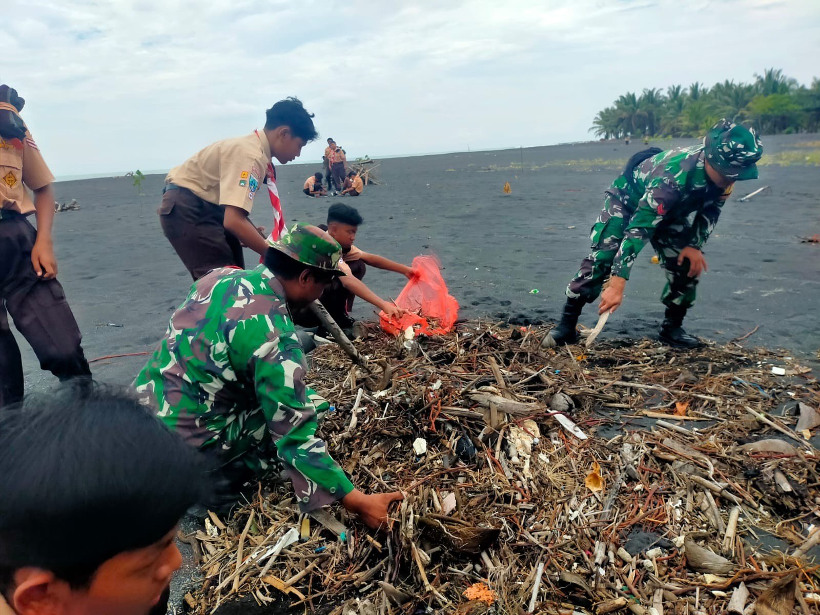 Lumajang — Sinergi antara TNI dan dunia pendidikan kembali ditunjukkan Koramil 0821-18/Tempursari dengan menggandeng pelajar SMPN 01 Tempursari dalam kegiatan Perkemahan Sabtu Malam Minggu (Persami) yang diisi aksi kerja bakti pembersihan Pantai Bulu, Dusun Tegalsari, Desa Tegalrejo, Kecamatan Tempursari, Kabupaten Lumajang, Jawa Timur, Minggu (8/2/2026).