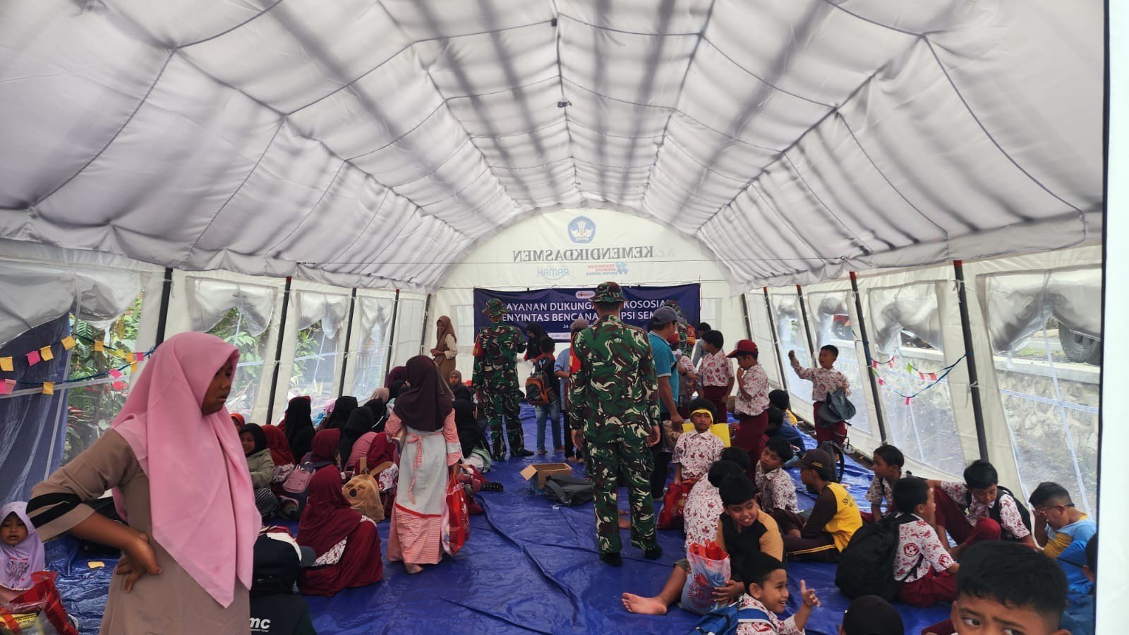 Pasi Log Kodim 0821/Lumajang, Kapten Czi Suharsono, menjelaskan bahwa kehadiran TNI di lapangan tidak hanya fokus pada penanganan darurat, tetapi juga memastikan sektor pendidikan yang menjadi salah satu fondasi pemulihan sosial tidak terabaikan.