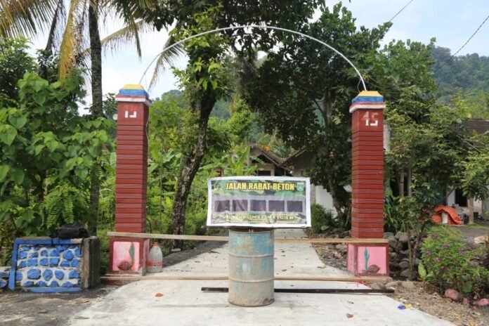 Pemandangan gapura bertuliskan “Jalan Rabat Beton TMMD ke-126” di ujung jalan menjadi simbol nyata keberhasilan kolaborasi antara TNI dan masyarakat dalam mewujudkan infrastruktur desa yang lebih baik.