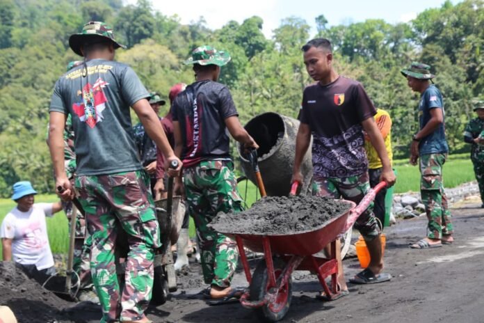 “Kami berupaya mendistribusikan material secara merata agar pekerjaan bisa berjalan lancar dan sesuai target waktu. Semangat kebersamaan antara TNI dan masyarakat menjadi kunci utama dalam menyukseskan program ini,” ujar Pratu Alhalim.