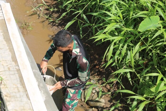 Malang, TMMD ke 126 – Personel TNI Manunggal Membangun Desa (TMMD) ke-126 Kodim 0818/Malang terus menunjukkan dedikasi dan profesionalisme di lapangan. Salah satu di antaranya adalah Praka Bagus, yang terlihat piawai dan teliti dalam mengerjakan pembangunan drainase di Dusun Krajan 2A, Desa Lebakharjo, Kecamatan Ampelgading, Kabupaten Malang, Minggu (19/10/2025).