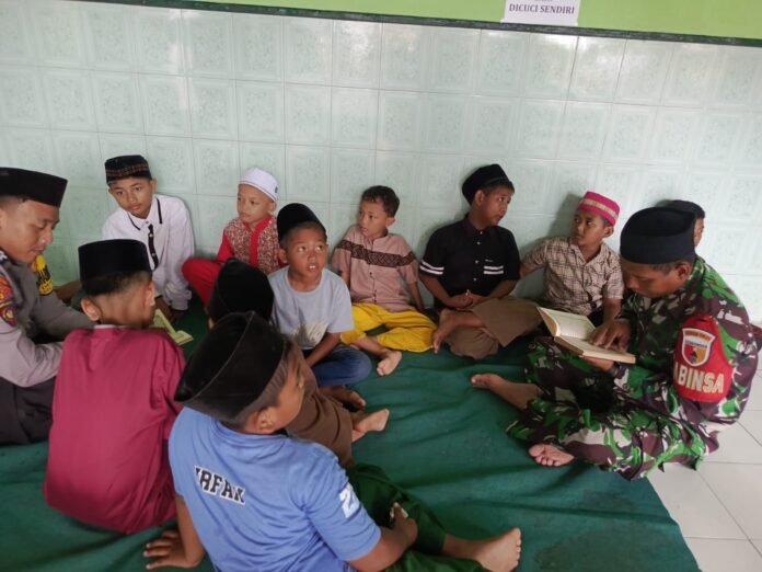 Sinergi Babinsa dan Bhabinkamtibmas Grati Berikan Pembinaan Rohani Anak Jelang Berbuka Puasa