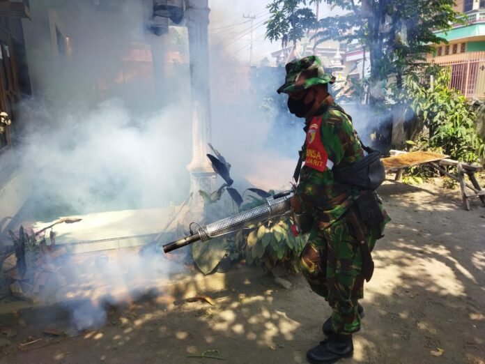 Lumajang – Dalam rangka mencegah penyebaran penyakit demam berdarah dengue (DBD), Babinsa Jarit Koramil 0821-09/Candipuro, Serka Wahyudi, melaksanakan kegiatan pendampingan fogging (pengasapan) di permukiman warga Dusun Kebonsari RT 003 RW 002 Desa Jarit, Kecamatan Candipuro, Kabupaten Lumajang, Jawa Timur, Selasa (28/4/2026).