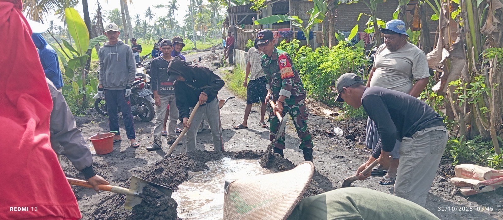 Lumajang – Wujud nyata kemanunggalan TNI dengan rakyat kembali terlihat melalui kegiatan pendampingan yang dilakukan Babinsa Nguter Koramil 0821-08/Pasirian. Sertu Faisol Akhmadi bersama warga melaksanakan kerja bakti pembangunan plengsengan penahan tanah di Dusun Umengan Utara RT 007 RW 002, Desa Nguter, Kecamatan Pasirian, Kabupaten Lumajang, Jawa Timur, Selasa (13/1/2026).