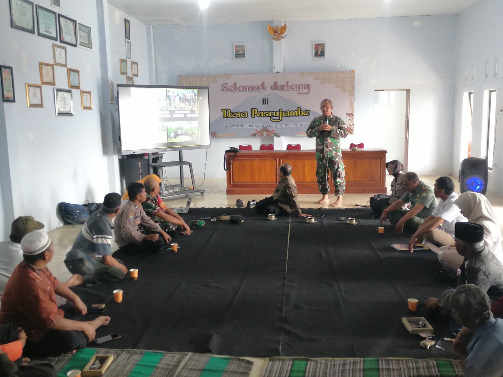 Lumajang – Upaya penguatan peran masyarakat desa penyangga kawasan konservasi terus dilakukan secara berkelanjutan. Danramil 0821-17/Pasrujambe Ony Ariyanto, S.H. melaksanakan kegiatan pendampingan Masyarakat Desa Penyangga dan Pemberian Materi Pengelolaan Dinamika Kelompok yang digelar di Aula Kantor Desa Pasrujambe, Kecamatan Pasrujambe, Kabupaten Lumajang, Jawa Timur, pada Selasa (16/12/2025).
