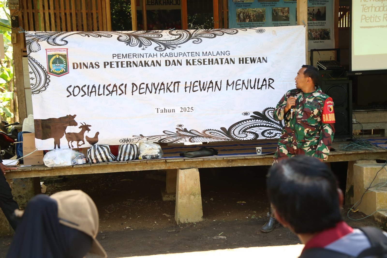 Malang, TMMD ke 126 – Dalam rangka kegiatan nonfisik TNI Manunggal Membangun Desa (TMMD) ke-126 Tahun Anggaran 2025 Kodim 0818/Malang-Batu, Satgas TMMD bersama Dinas Peternakan dan Kesehatan Hewan Kabupaten Malang melaksanakan bimbingan teknis (Bimtek) dan sosialisasi mengenai penyakit hewan menular, disertai pengobatan massal bagi ternak milik warga.