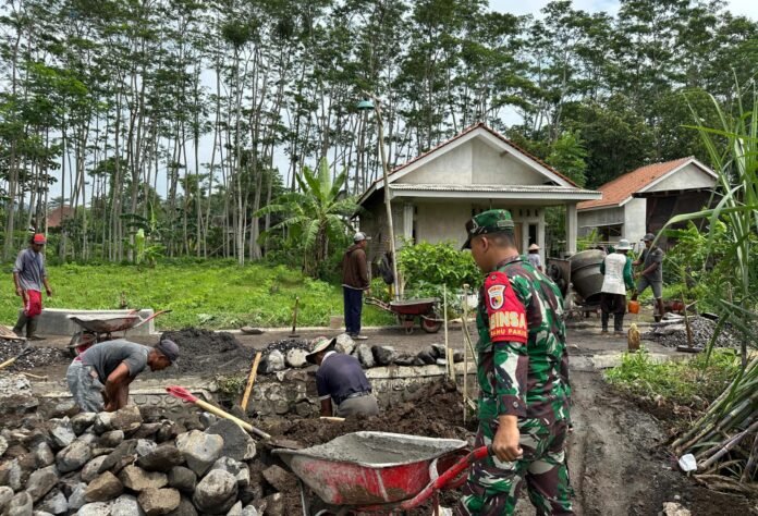 Lumajang, Dalam rangka meningkatkan pembinaan teritorial (Binter) di wilayah binaannya, Babinsa Ranupakis Koramil 0821-05/Klakah, Sertu Yuliyanto, turut melaksanakan pendampingan kegiatan pengecoran jalan rabat beton sepanjang 300 meter yang berlokasi di Dusun Krajan RT 002 RW 001 Desa Ranupakis, Kecamatan Klakah, Kabupaten Lumajang, Jawa Timur, pada Senin (20/10/2025).
